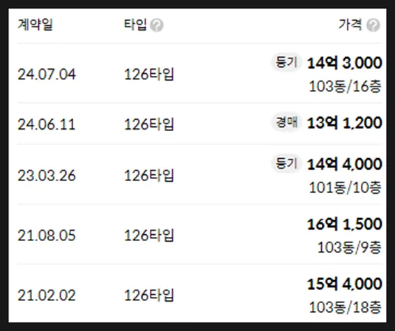 최저매물가와 최저매각가 차이 4억원 이상