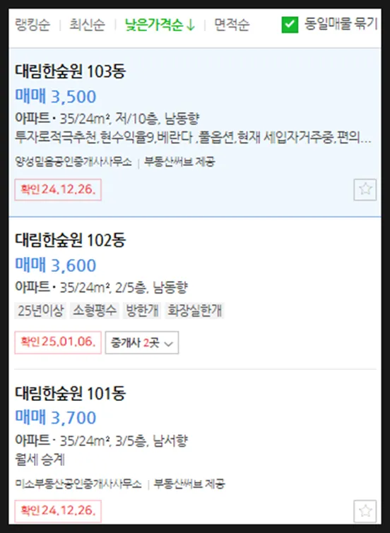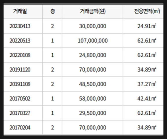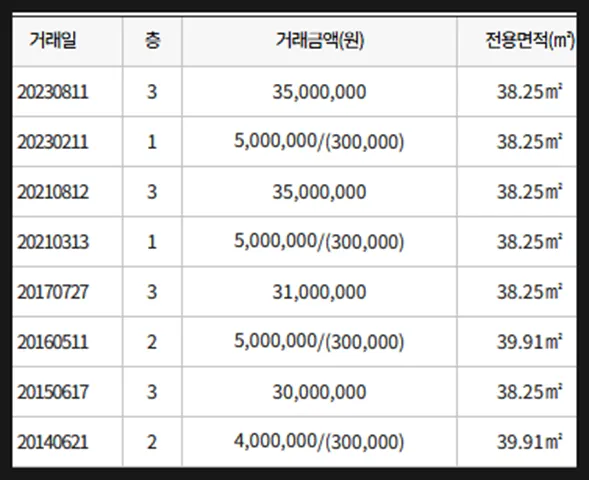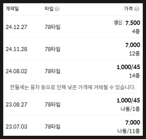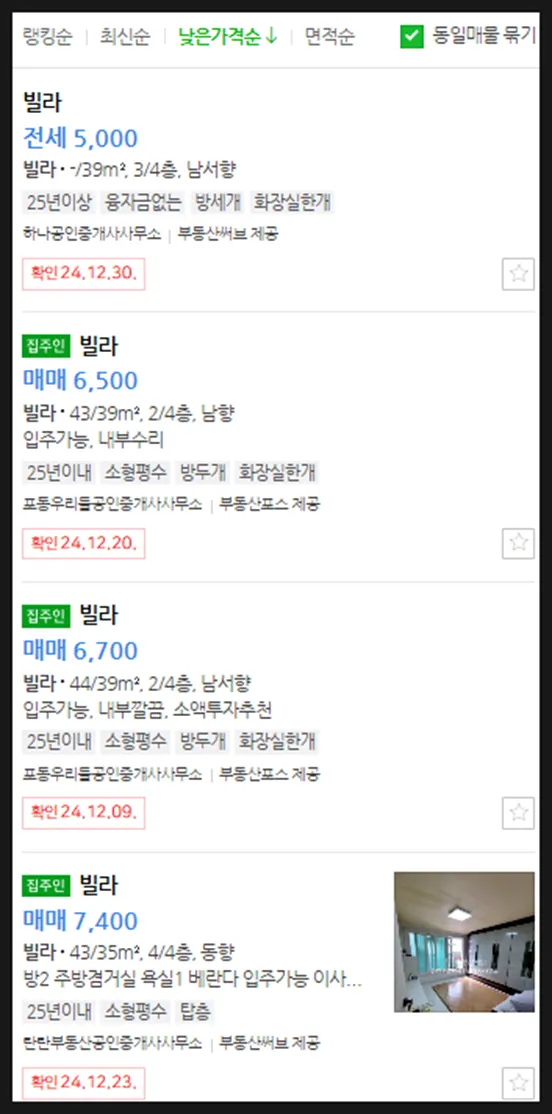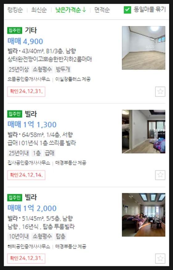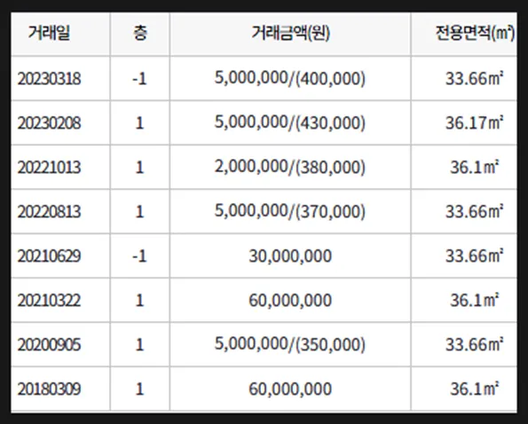 전세 최저가 5000만원 / 매매 최저가 6500만원