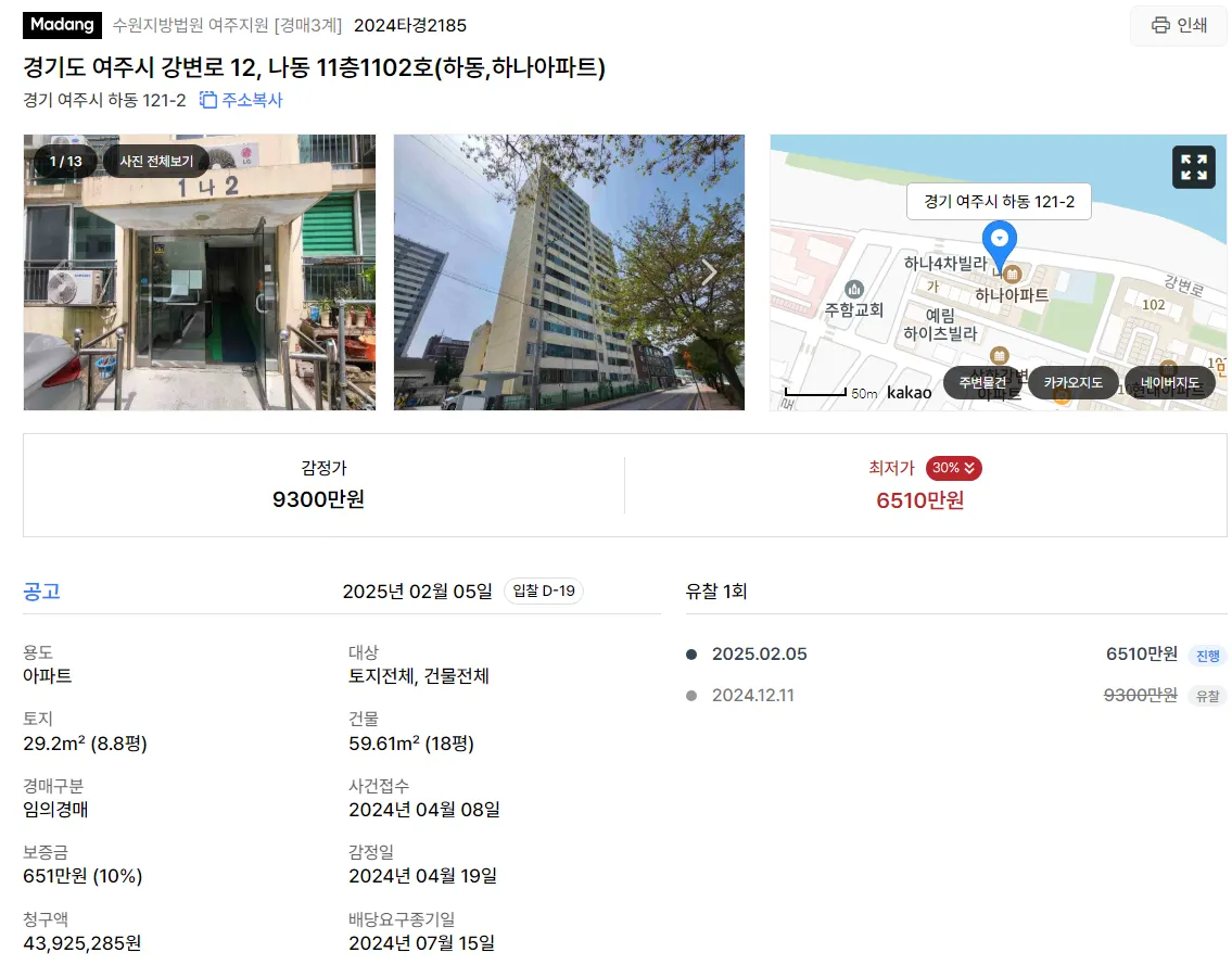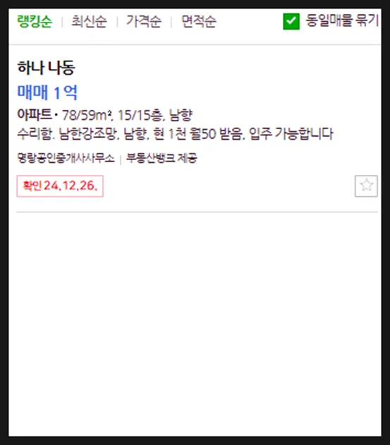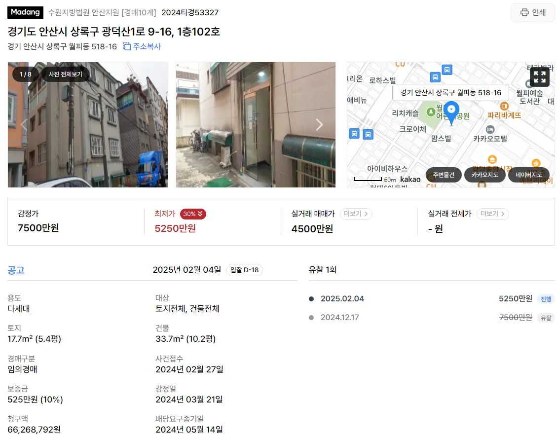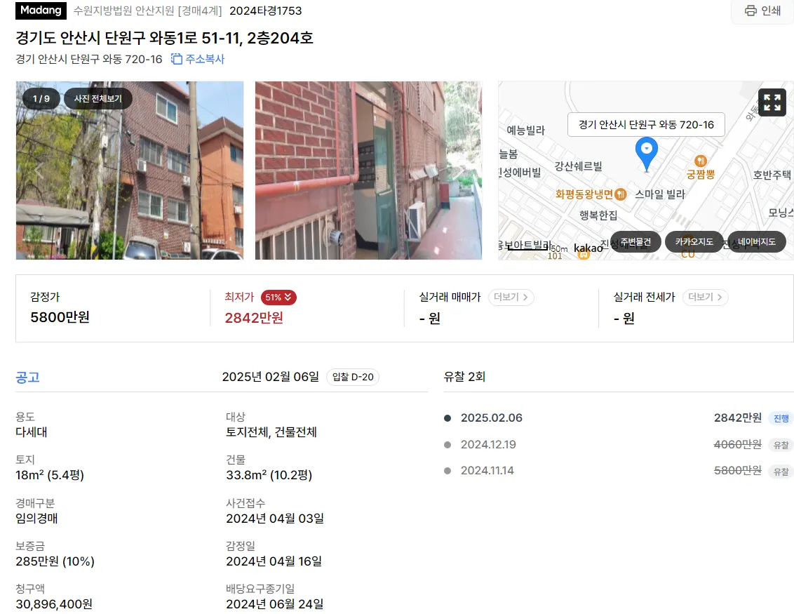 물건 정보는 국토부 자료 및 씨리얼지도 등에도 정보가 상이하여