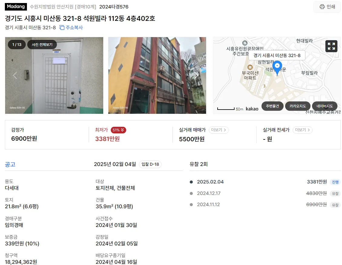 경매 물건은 3층 물건으로 선호도 높음(3층 최저가 3700만원)