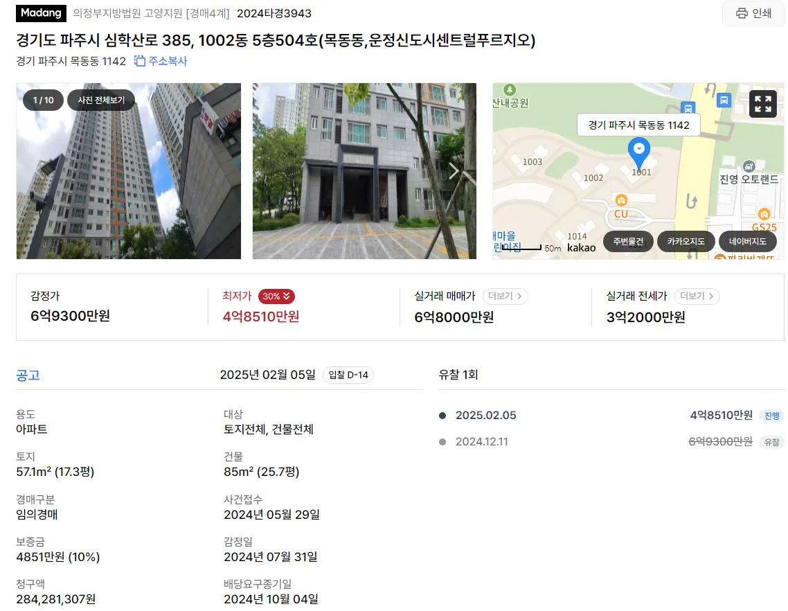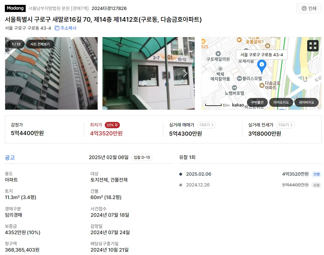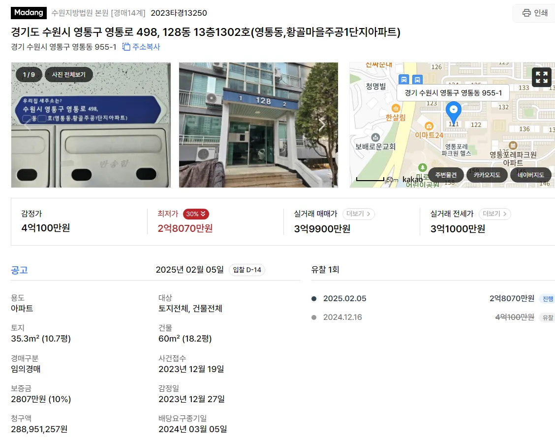 최저매물가와 최저매각가 차이 3.3억원 이상