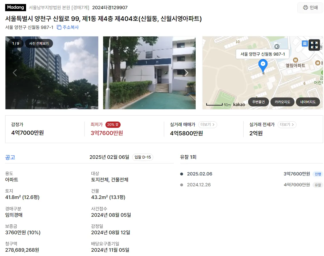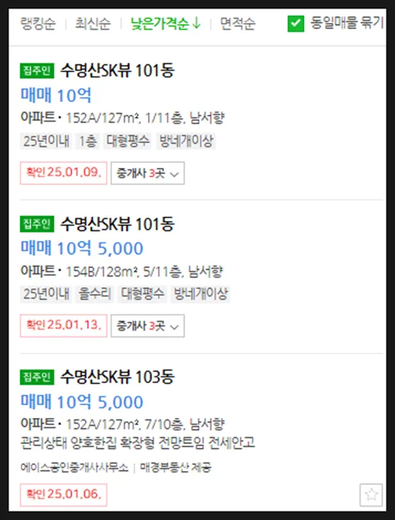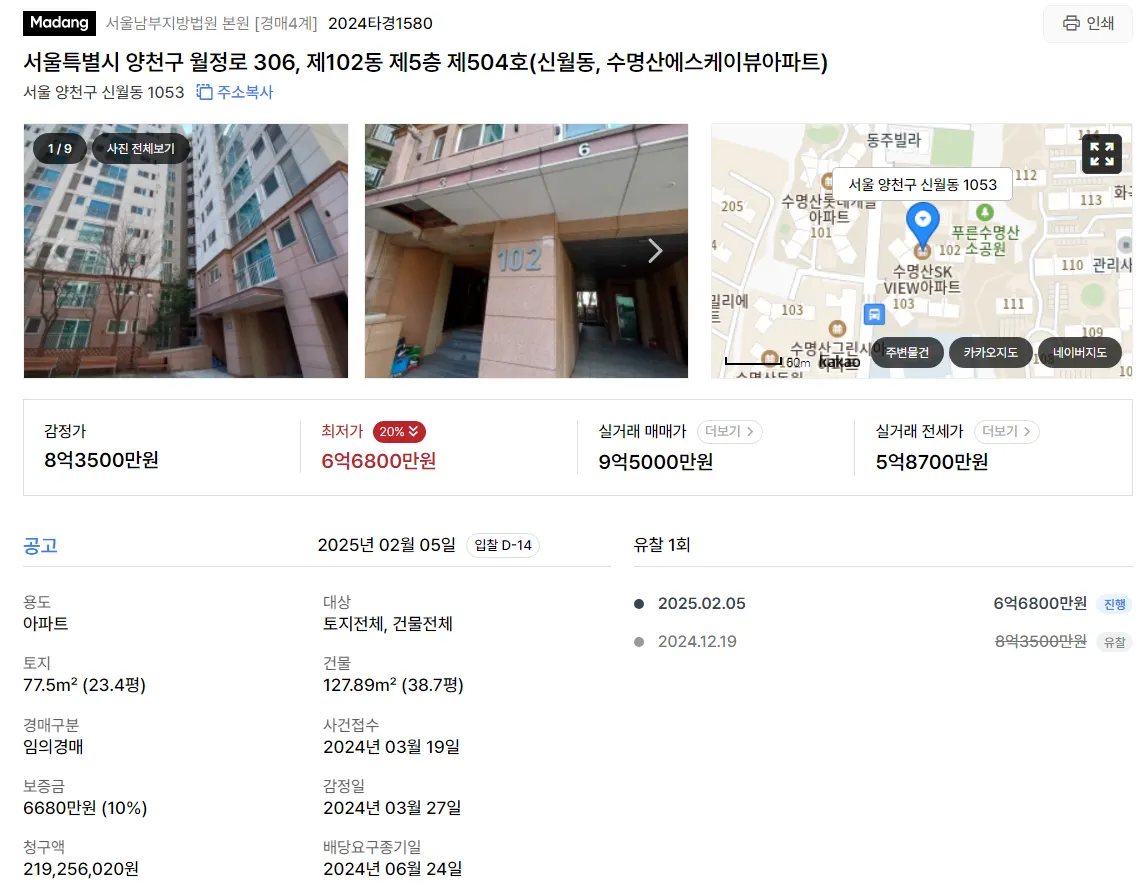 최저매물가와 최저매각가 차이 1.6억원 이상