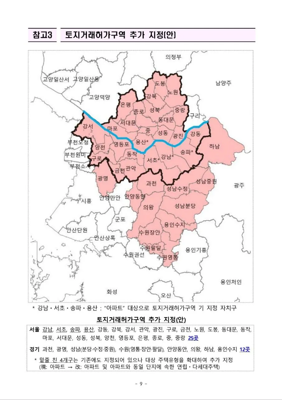 서울 전역과 일부 경기 지역은 토지거래허가구역으로 지정되었습니다.