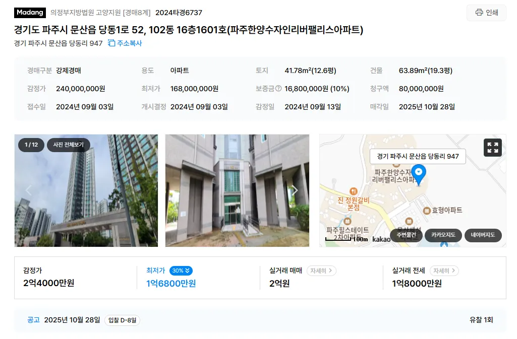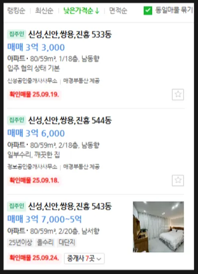 최저매물가와 최저매각가 차이 8000만원