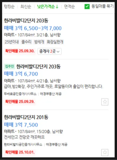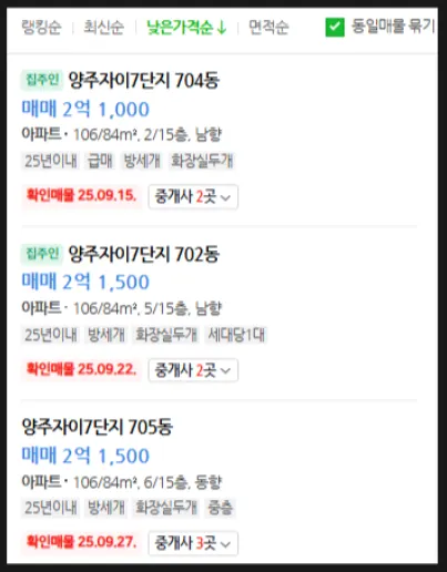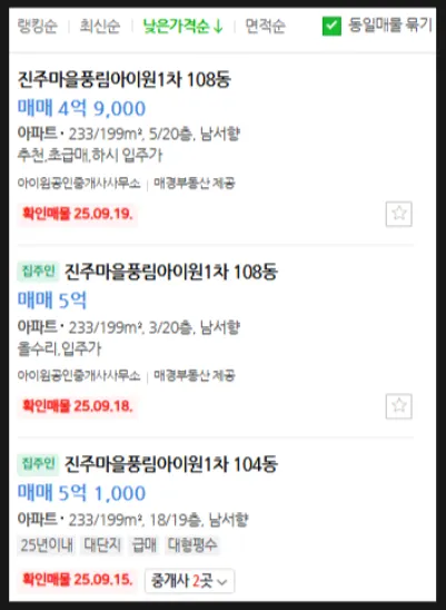 최저매물가와 최저매각가 차이 2억원 이상