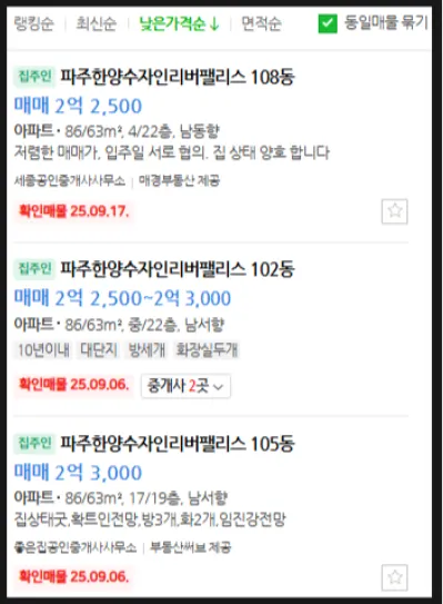 최저매물가와 최저매각가 차이 2500만원 이상