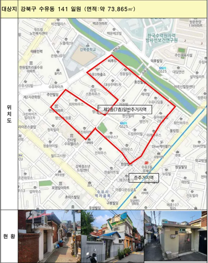 서울특별시 강북구 수유동 소재 "강북중학교" 동측 인근에 위치하는