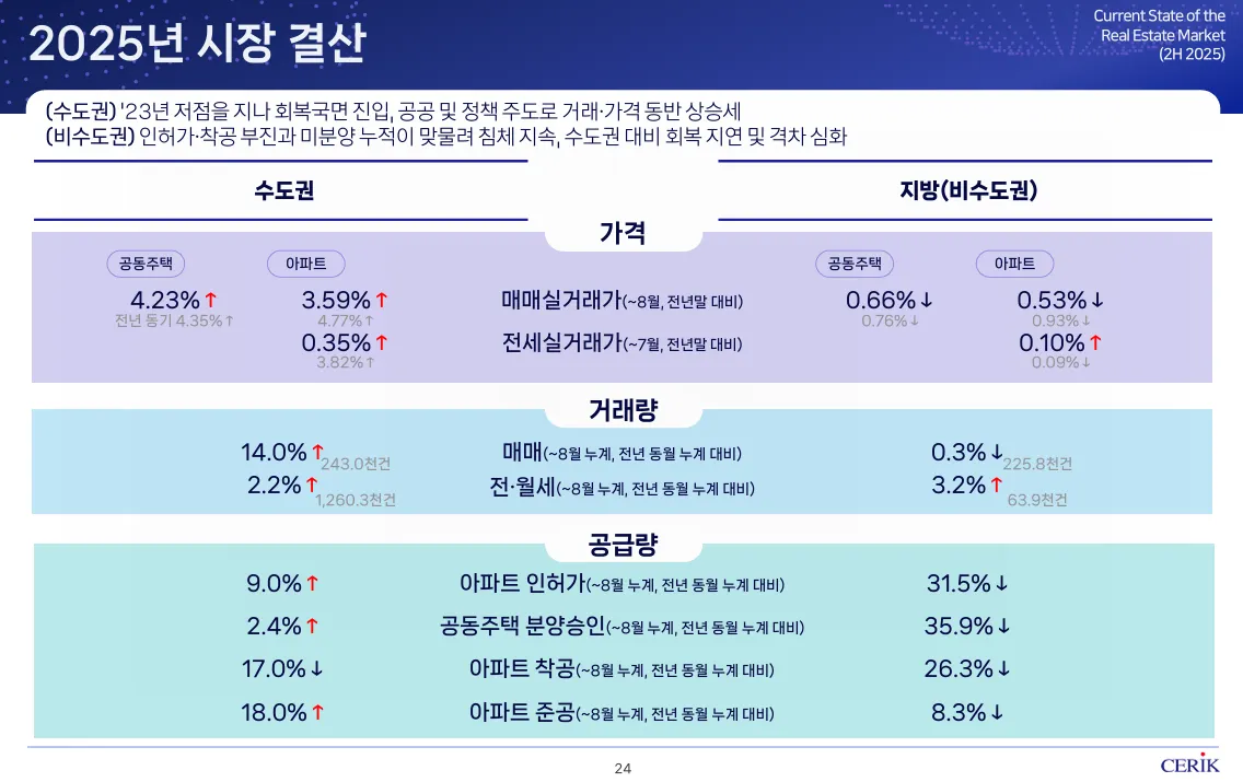 전체적으로는 전국 동시 회복보다는 선택적 회복 + 양극화가 뚜렷했던 시장이었습니다.