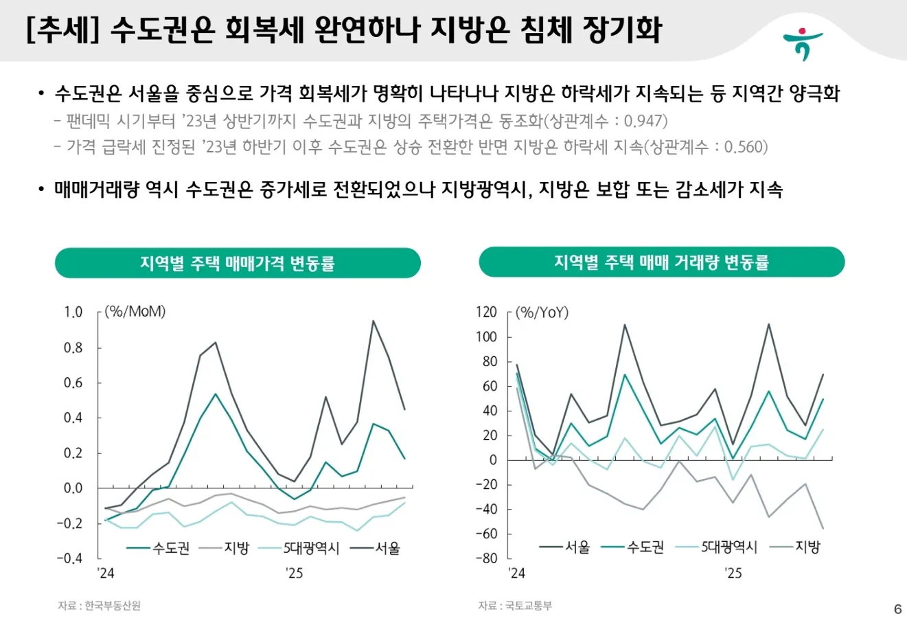 지방·외곽지역은 미분양이 쌓이고 매수심리가 위축되는 이중구조가 심화됐다고 진단했어요.