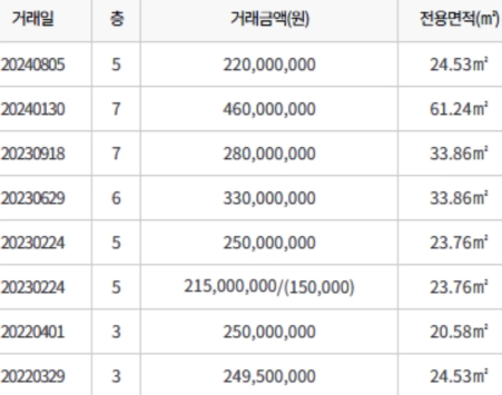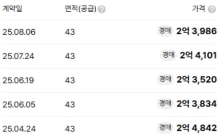 최근 경매로 다수 낙찰되어 낙찰가 유추 가능
