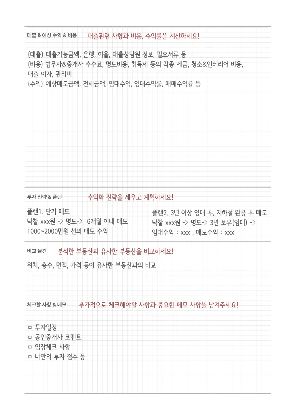 자신만의 투자 물건 정리법을 만들어 보세요!