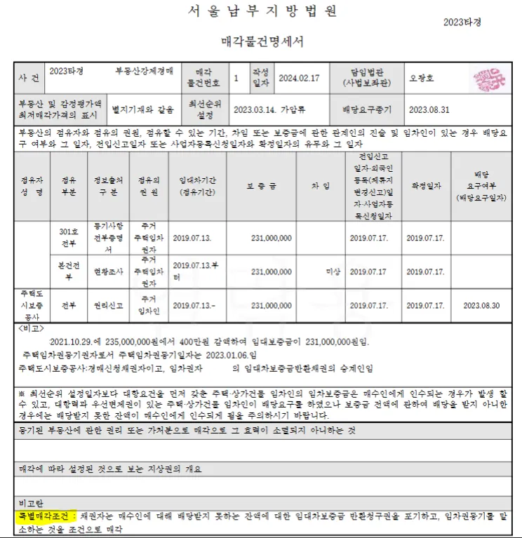 인수조건변경으로 대항력이 없어진 물건임을 파악하고