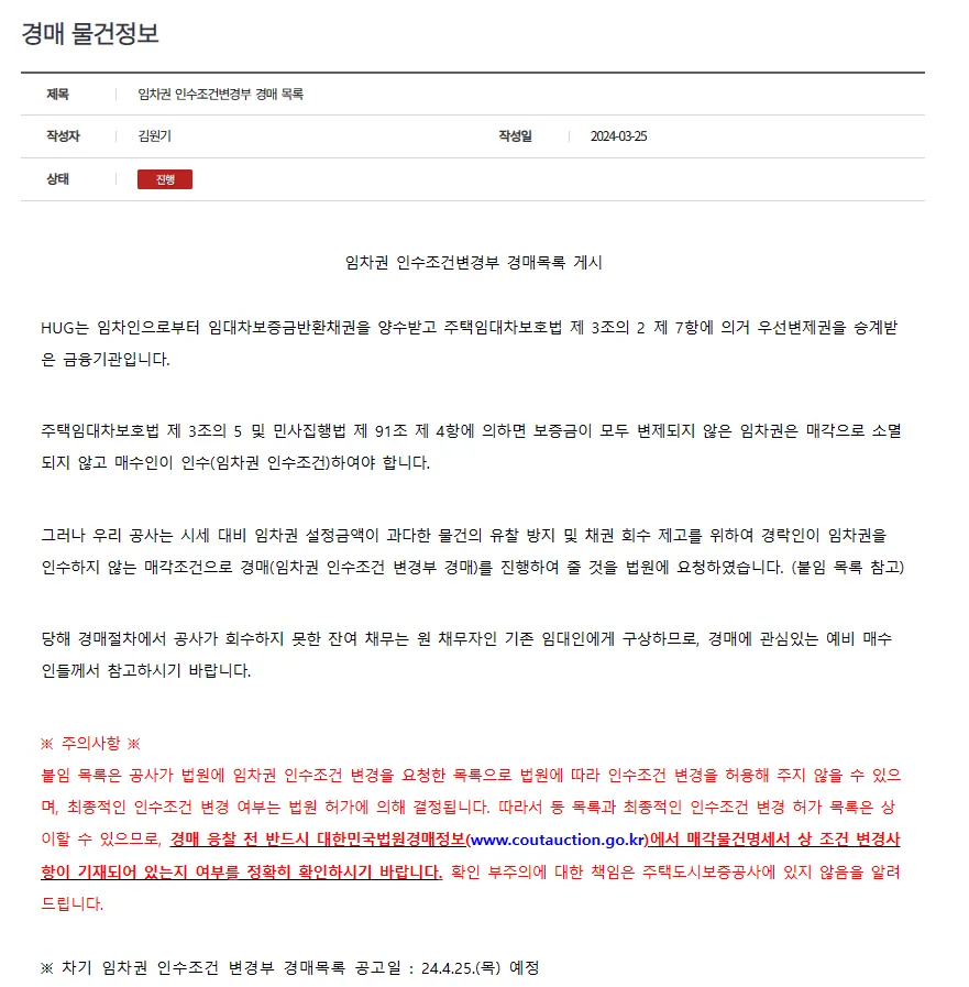 로 들어가시면 임차권 인수조건변경부 경매리스트를 받아보실 수 있습니다.