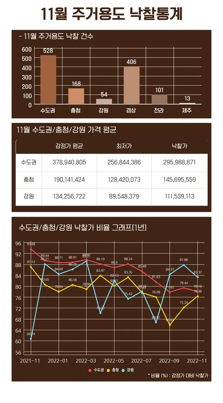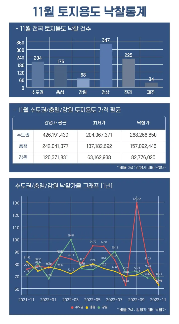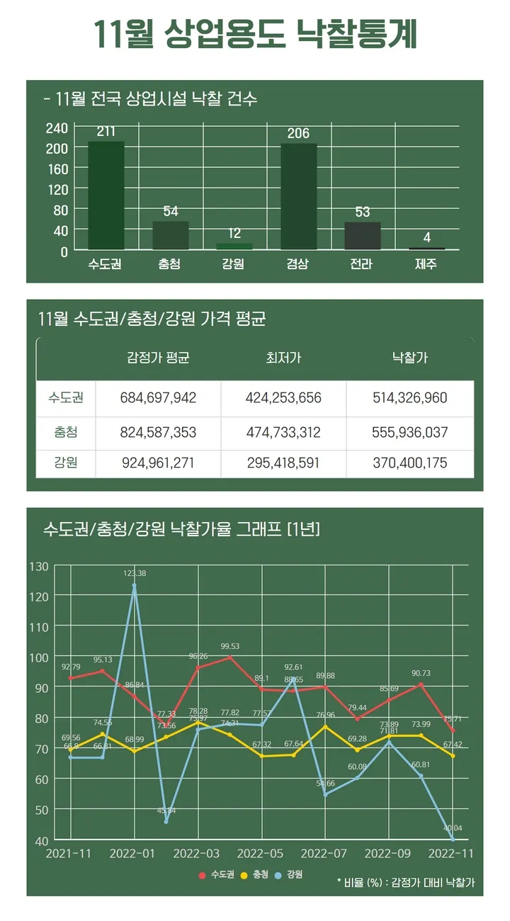 매월 낙찰가율을 용도·지역별로 정리해 보내드리고 있습니다.