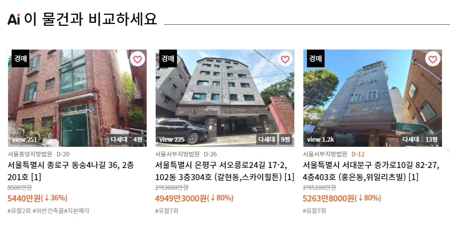 내가 보고 있는 경매물건과 비슷한 물건을 비교해 봐야하는데